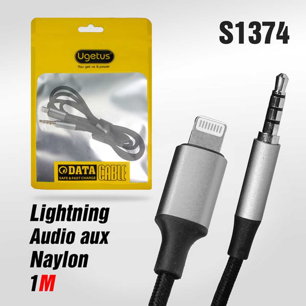Шнур 3,5 AUX - Lightning 4-х конт. UG05_S1374 черный1м