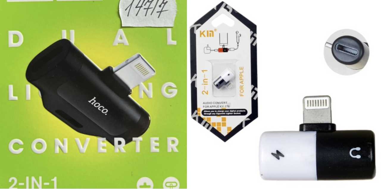 Адаптер-переходник HOCO LS31_Ky176_A3236Lightning шт.+2*гн. Lightning для наушников