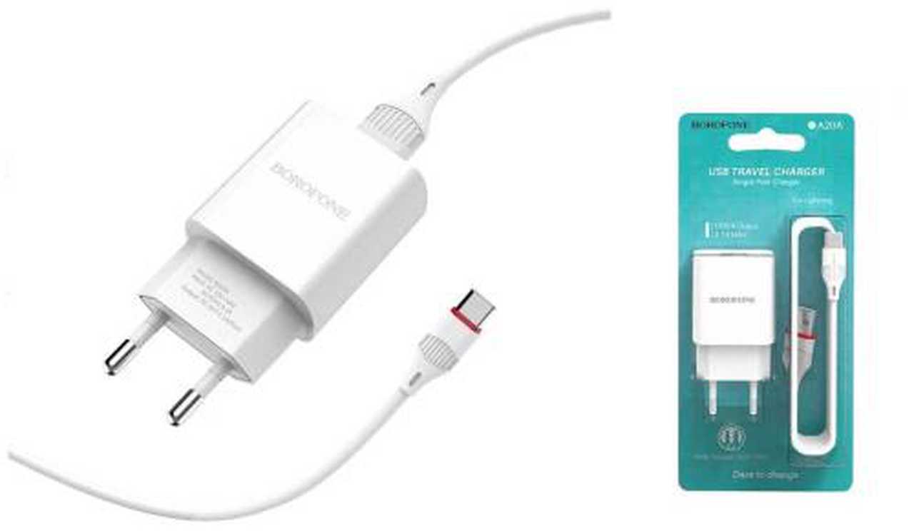 СЗУ 1*USB 5V-2,1A Borofone BA20A + шнур Type-C 1м