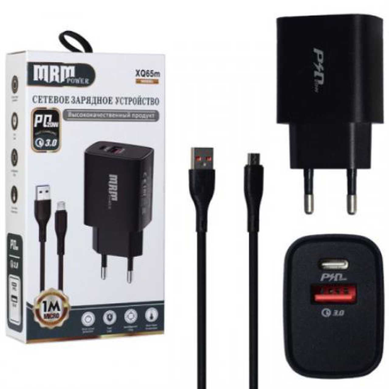 СЗУ 1+1 (1xUSB+1хPD type-c) XQ65_B4680 в комплекте MicroUSB