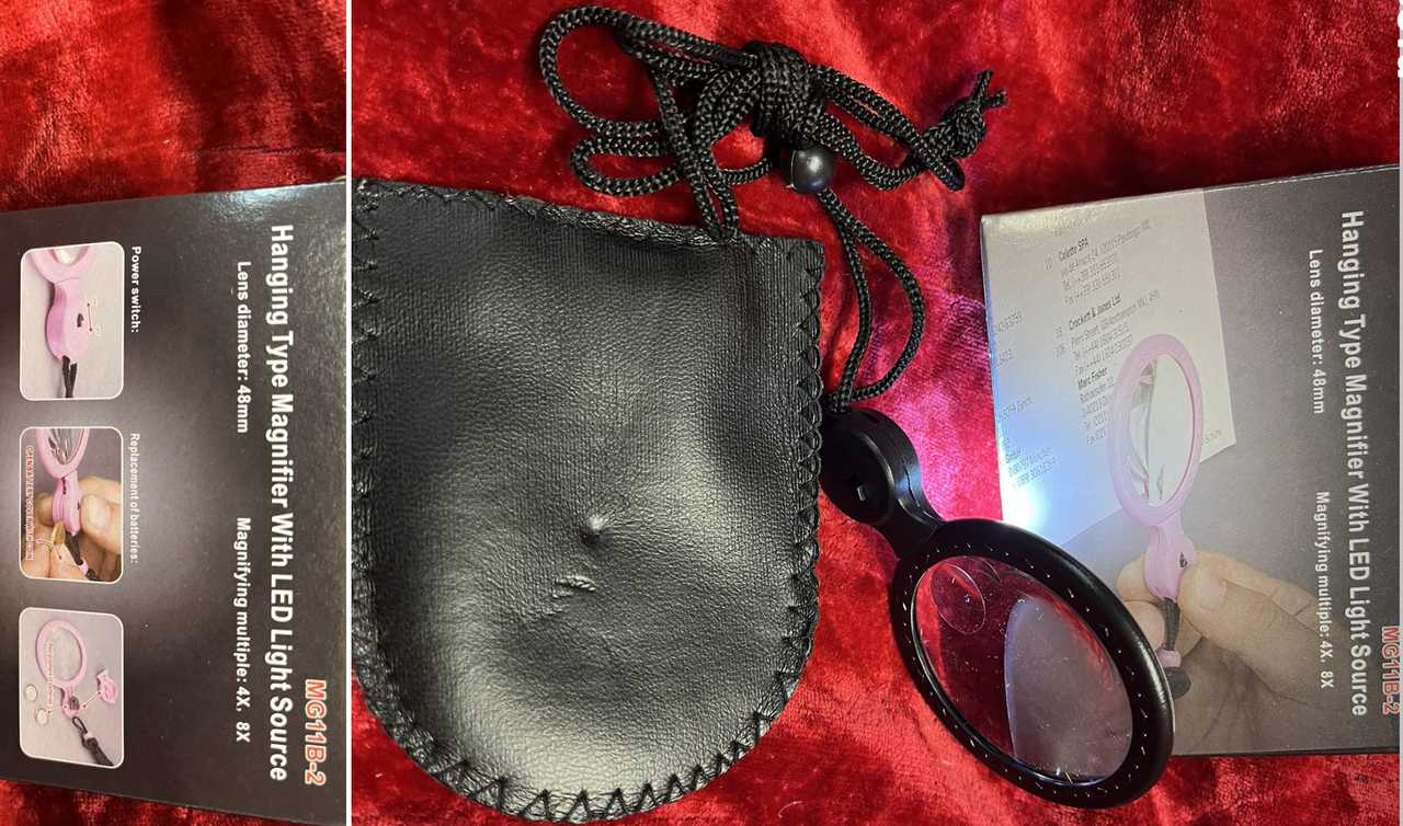 Лупа 11B-2 на Шею с верёвкой 1LED в чехольчике 48мм 4X 8X 2*AG13 12шт/уп