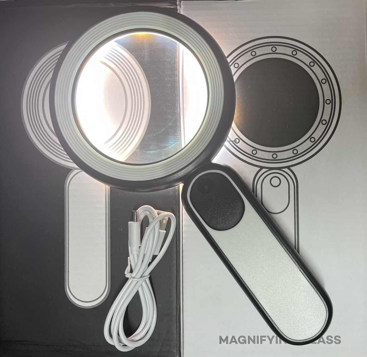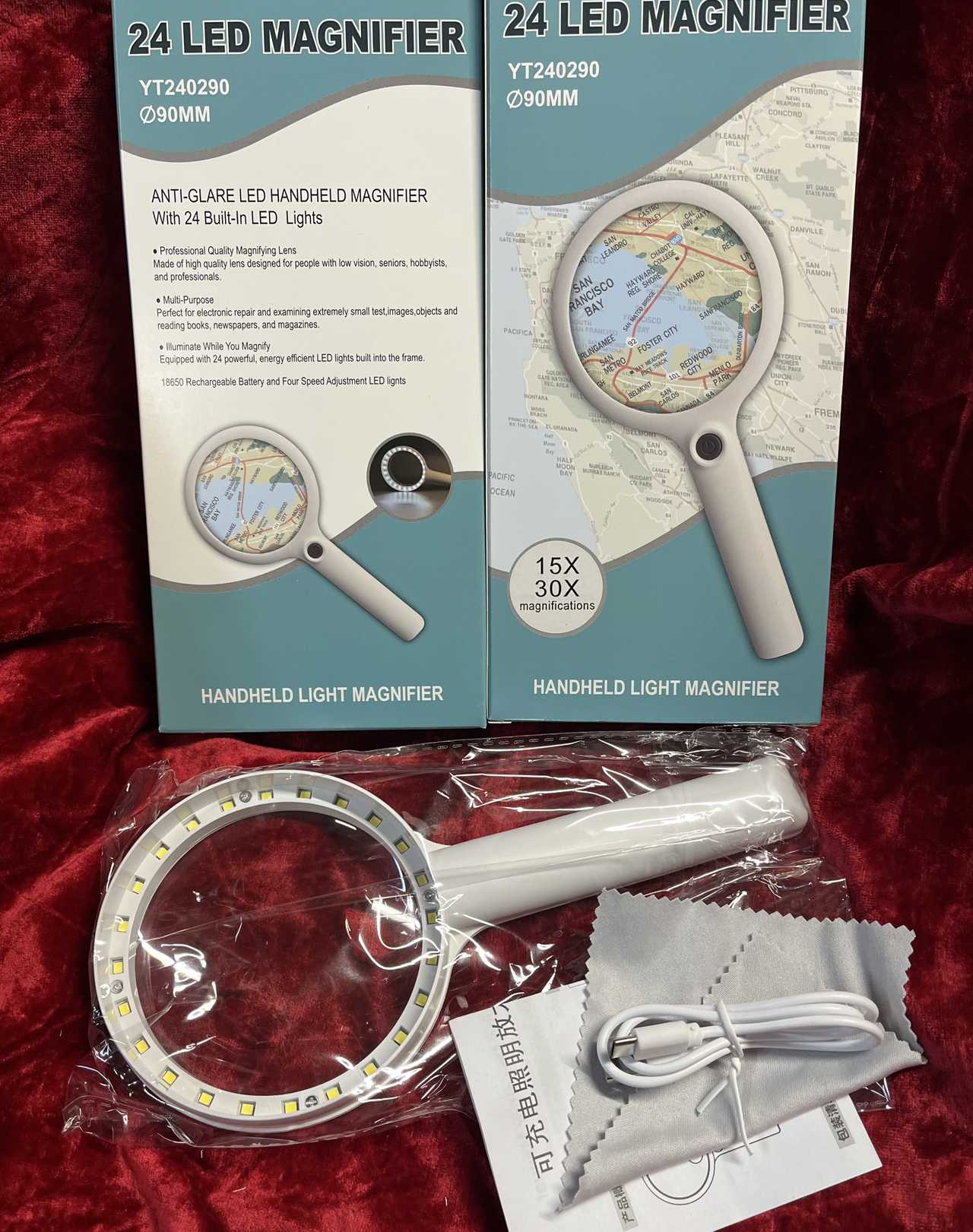 Лупа ручная YT240290 аккумуляторная 15X 30X Ø=90мм 24*LED шнType-c