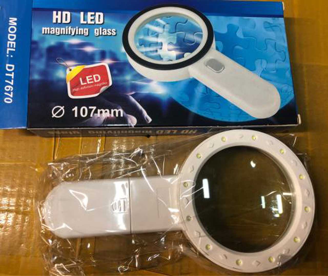 Лупа DT-7666 ф110 30Х с 3*LED подсветкой 2*ААА 20шт/уп