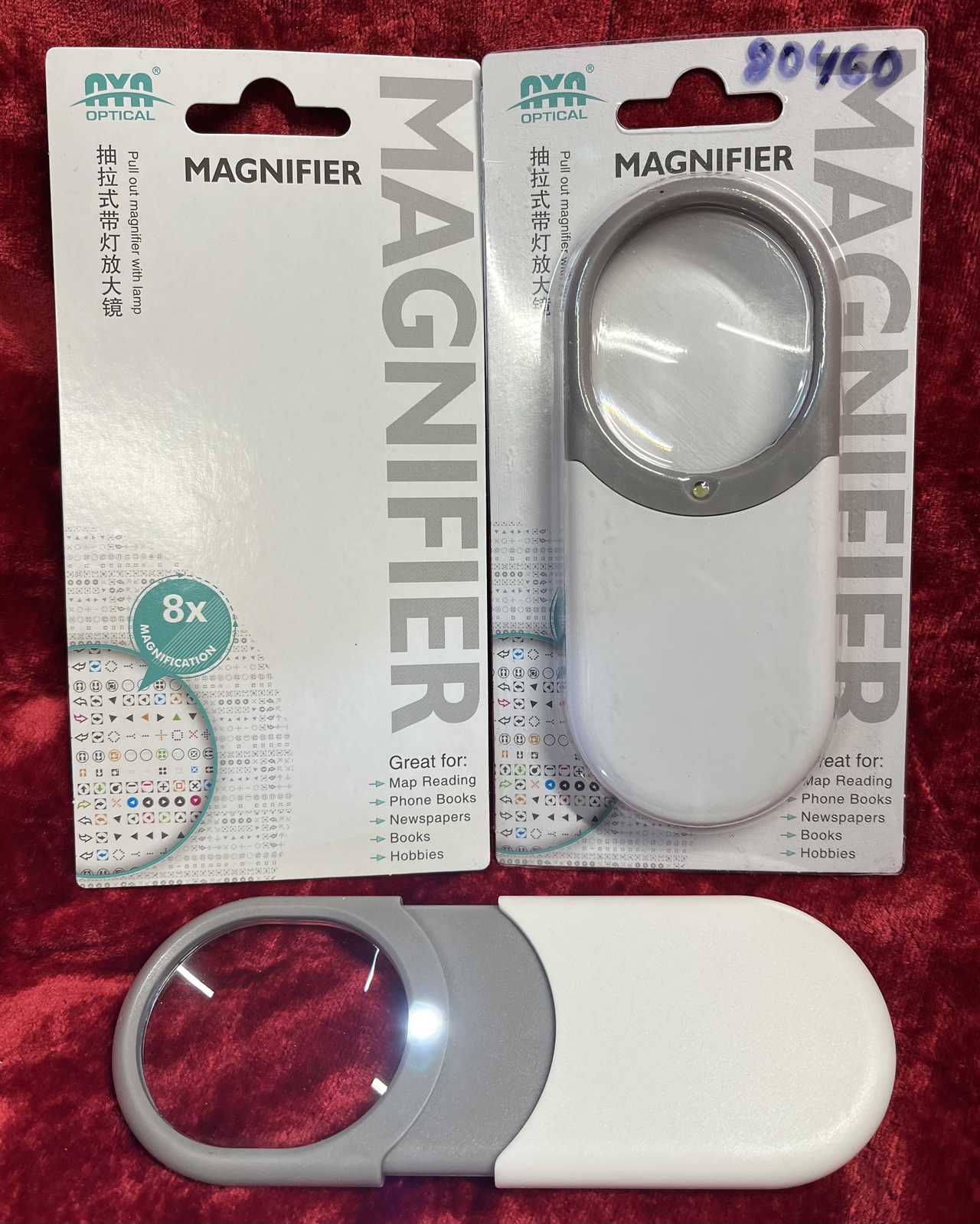 Лупа 80460 сдвижная с подсветкой 1LED 8X 24шт/уп