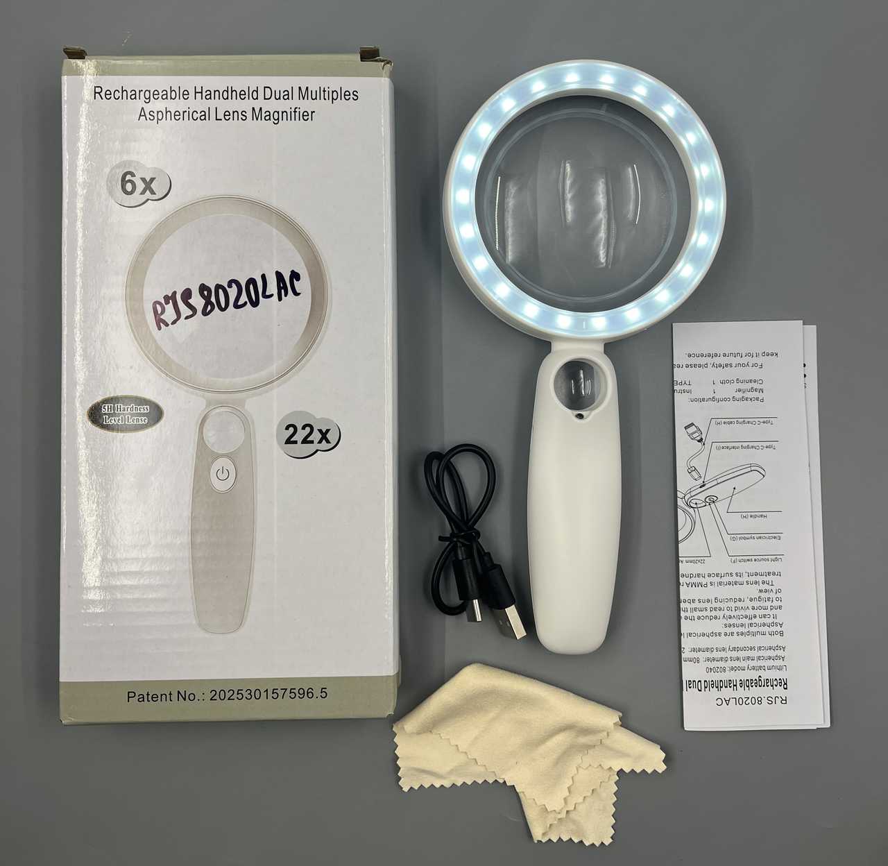 Лупа RJS-8020LAC 6/22x 22*Led подсв.+встр. аккум.+шн.Type-C 10шт/уп