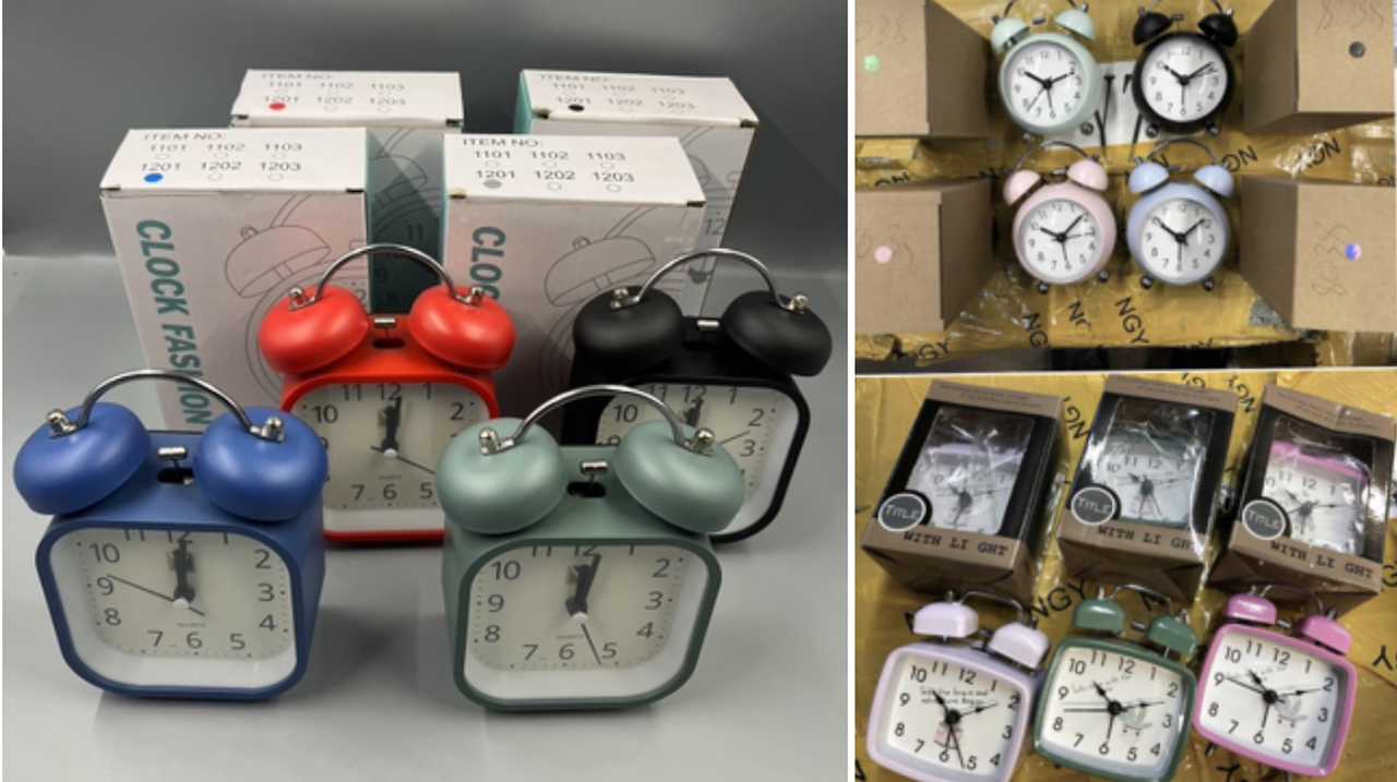 Часы+будильник метал Средний YH-668 розовые зеленые серые мята белые черные