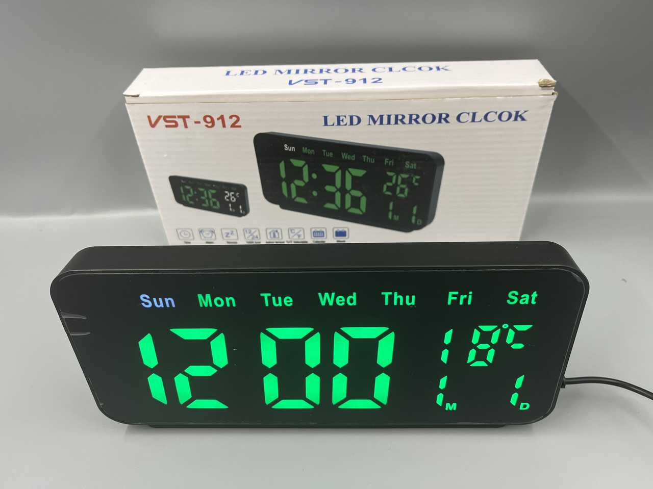 Часы+температура+календарь VST-912-4 прямоугольные ЗЕЛЕНАЯ подсветка ФОТО