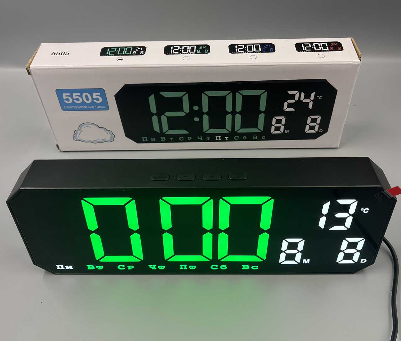 Часы+термометр DS-8082L Внимательно! зеленый дисплей