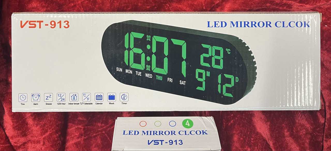 Часы VST-771T-4 настенные с ЗЕЛЕНОЙ подсветкой +дата+температура+ПУЛЬТ NEW