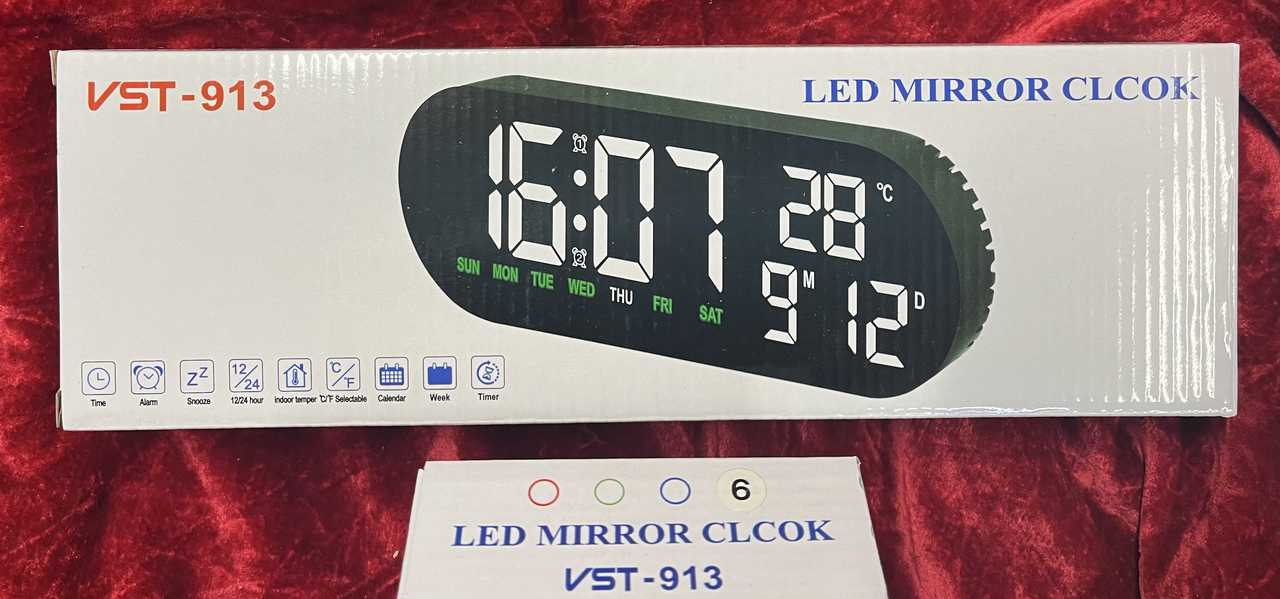Часы+термометр зеркало VST-897L-6 БЕЛая подсветка АККУМУЛЯТОРНЫЕ