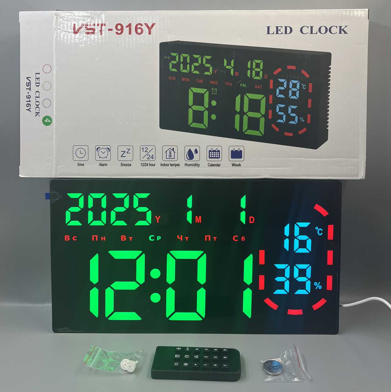 Часы+термометр+влажность+календарь 8082T Внимательно! цветной дисплей