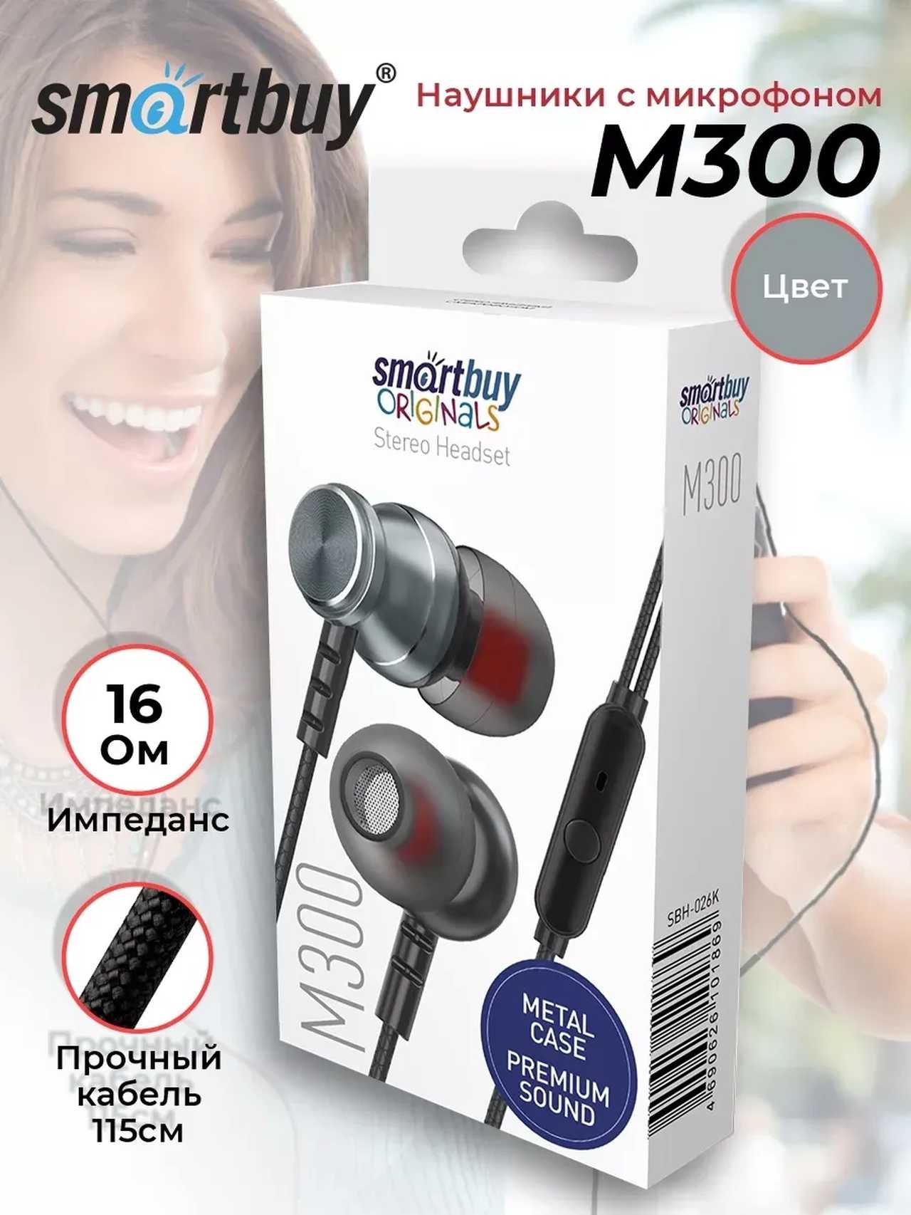 Наушники внутриканальные Smartbuy M300 с микрофоном картон 10шт/уп