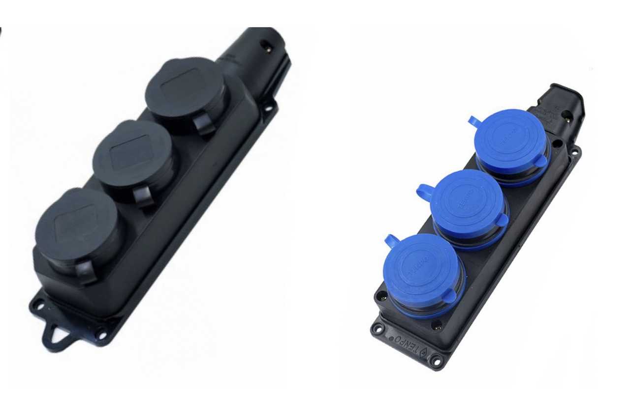 Колодка 3-я ЕВРО КАУЧУК с крышками11-0207 YK403P 16А iP44 4/40шт/уп