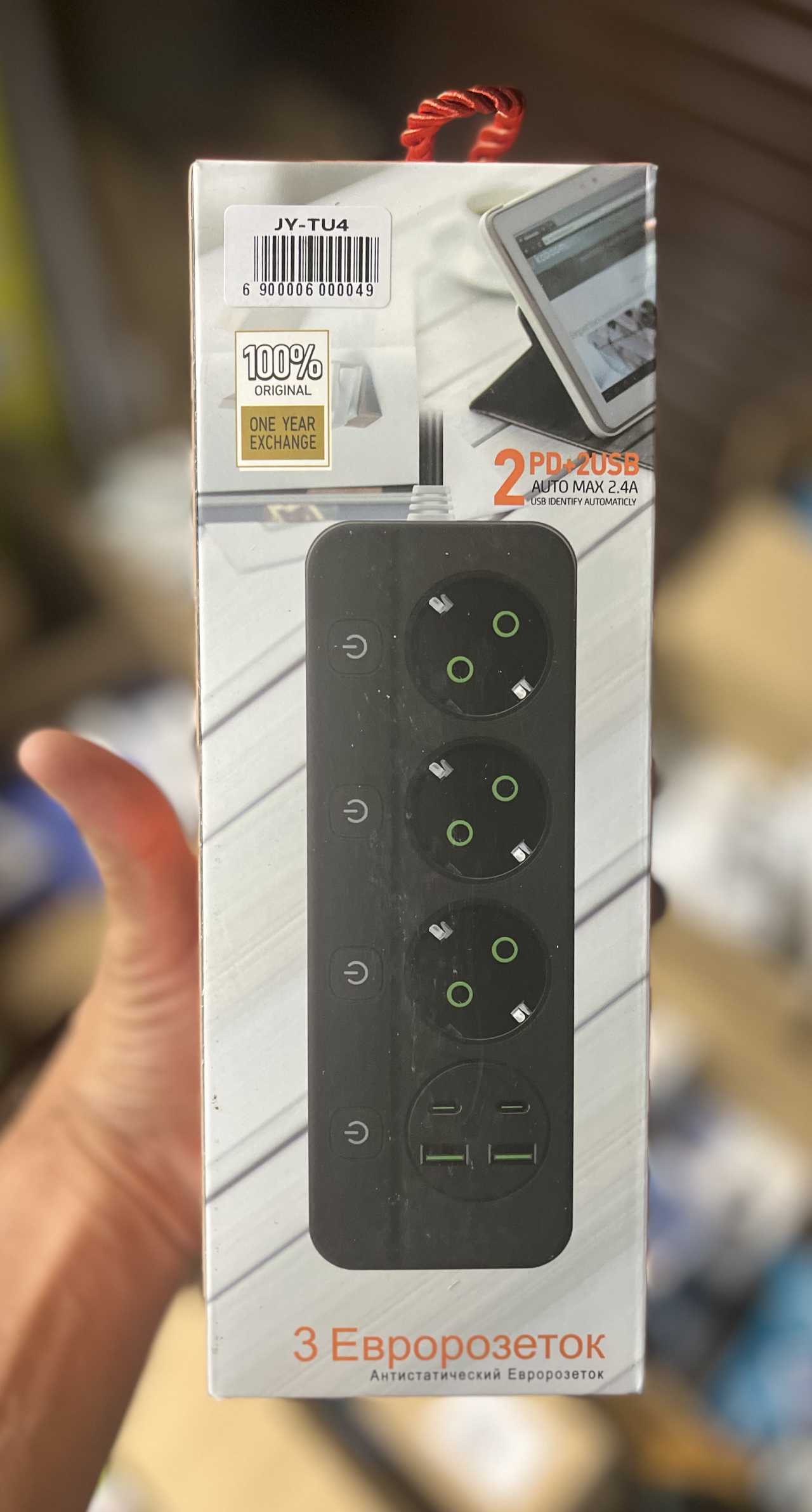 Сетевой фильтр 3-х местн. JY-TU4 с проводом 2м + 2*USB+2*Type-C Б/Г