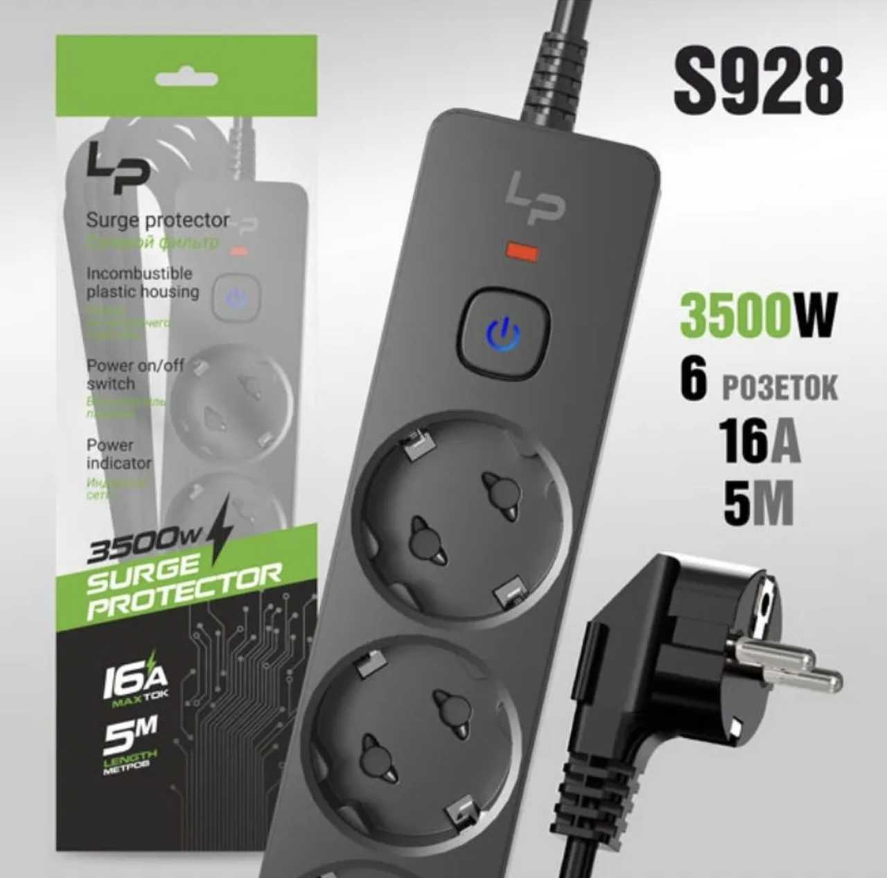 Сетевой фильтр 6 розеток LP5165_5м_S928_S929 с/з 16А с Выкл. ЗМАН