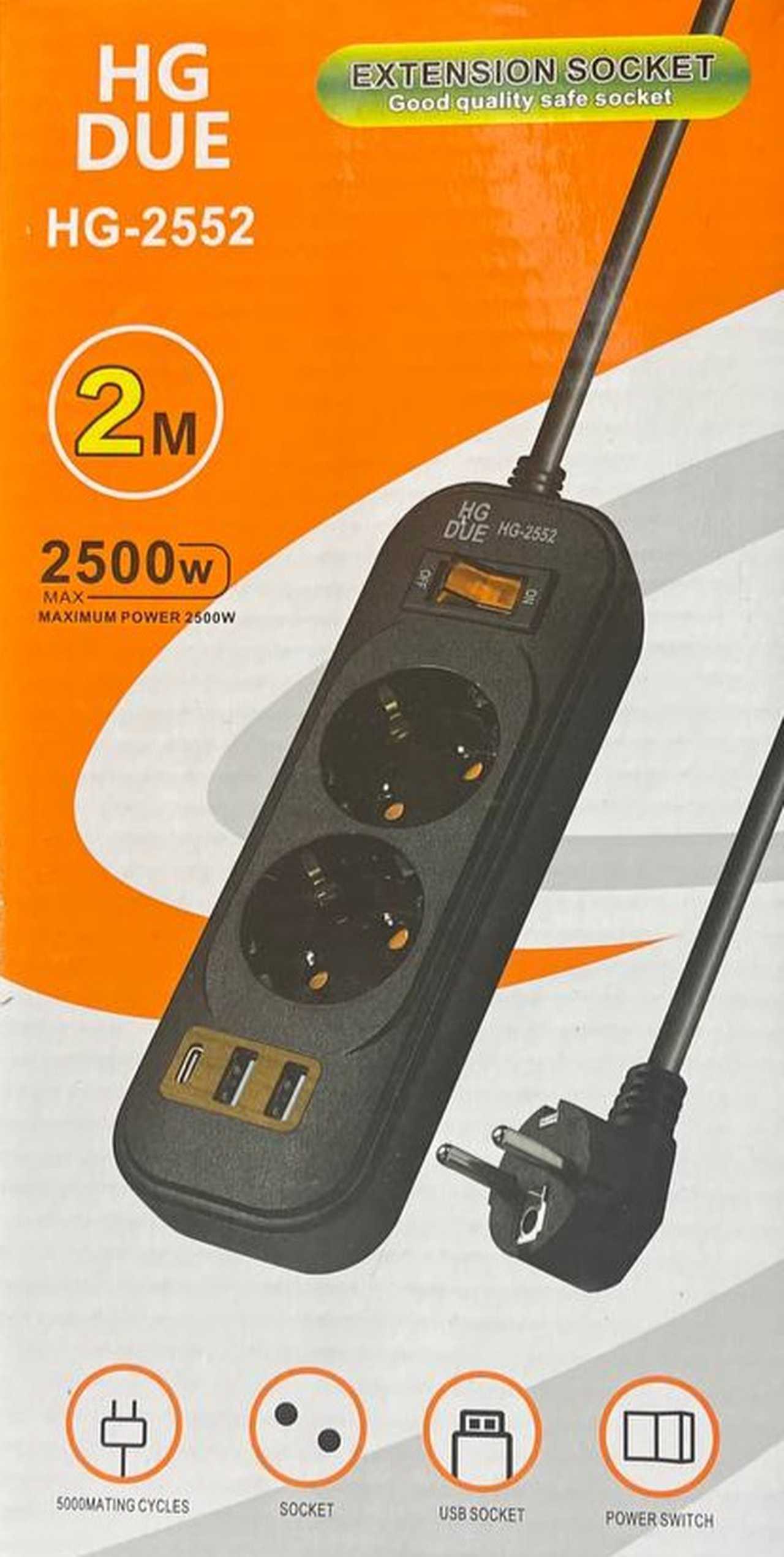 Сетевой фильтр 2-х местн. HG-2552 2м + 2*USB+Type-C
