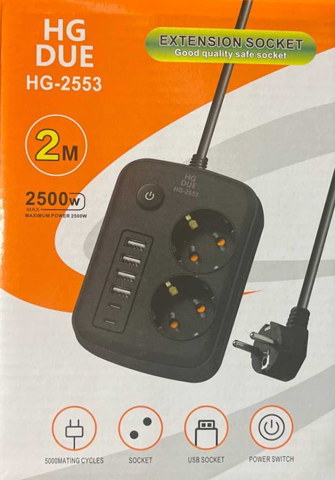 Сетевой фильтр 2-х местн. HG-2553 2м + 4*USB+2*Type-C