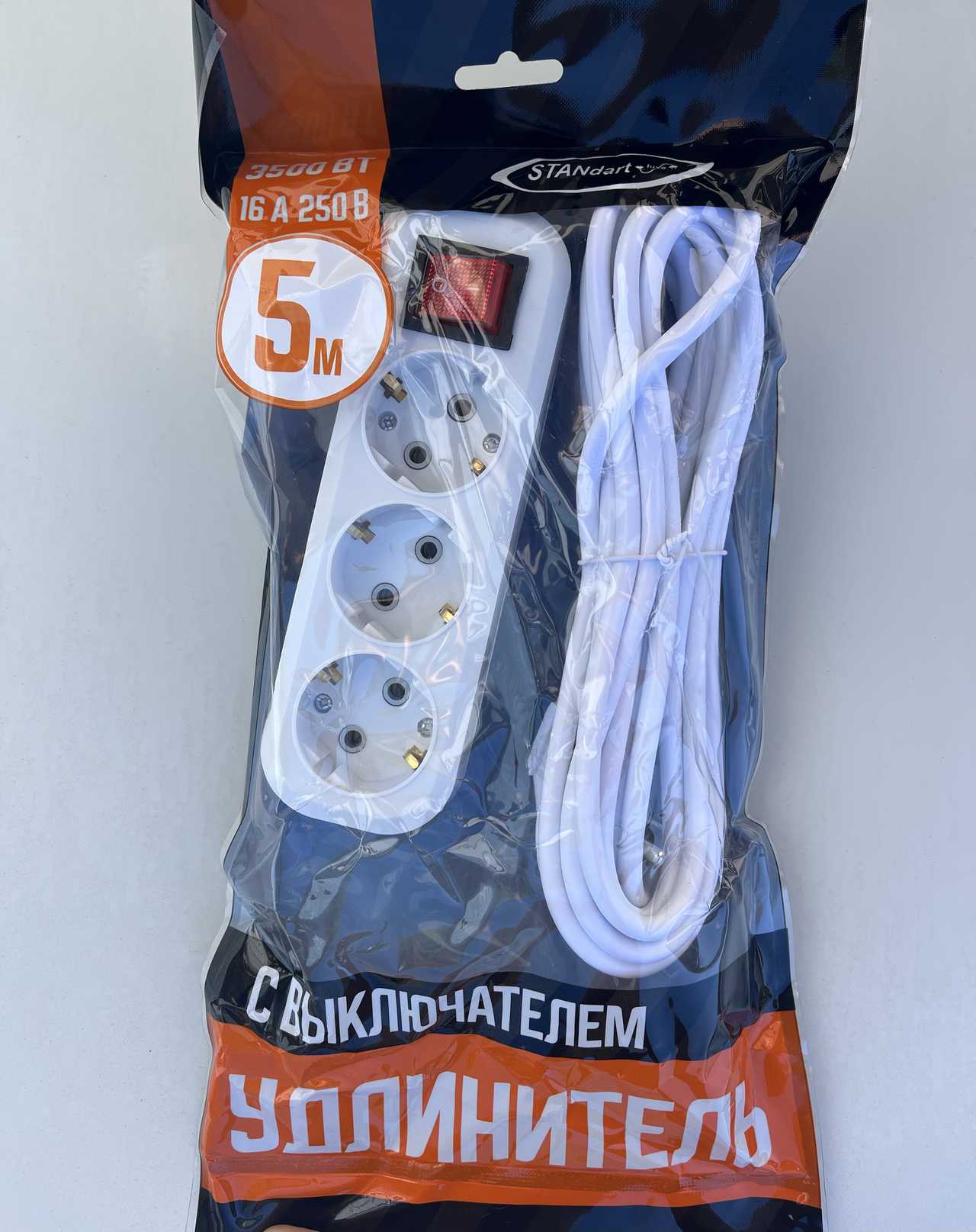Удл-ль Standart Евро 3гн. 5м ST12-3W-5M провод ПВС 3*1 круглый 45шт/уп