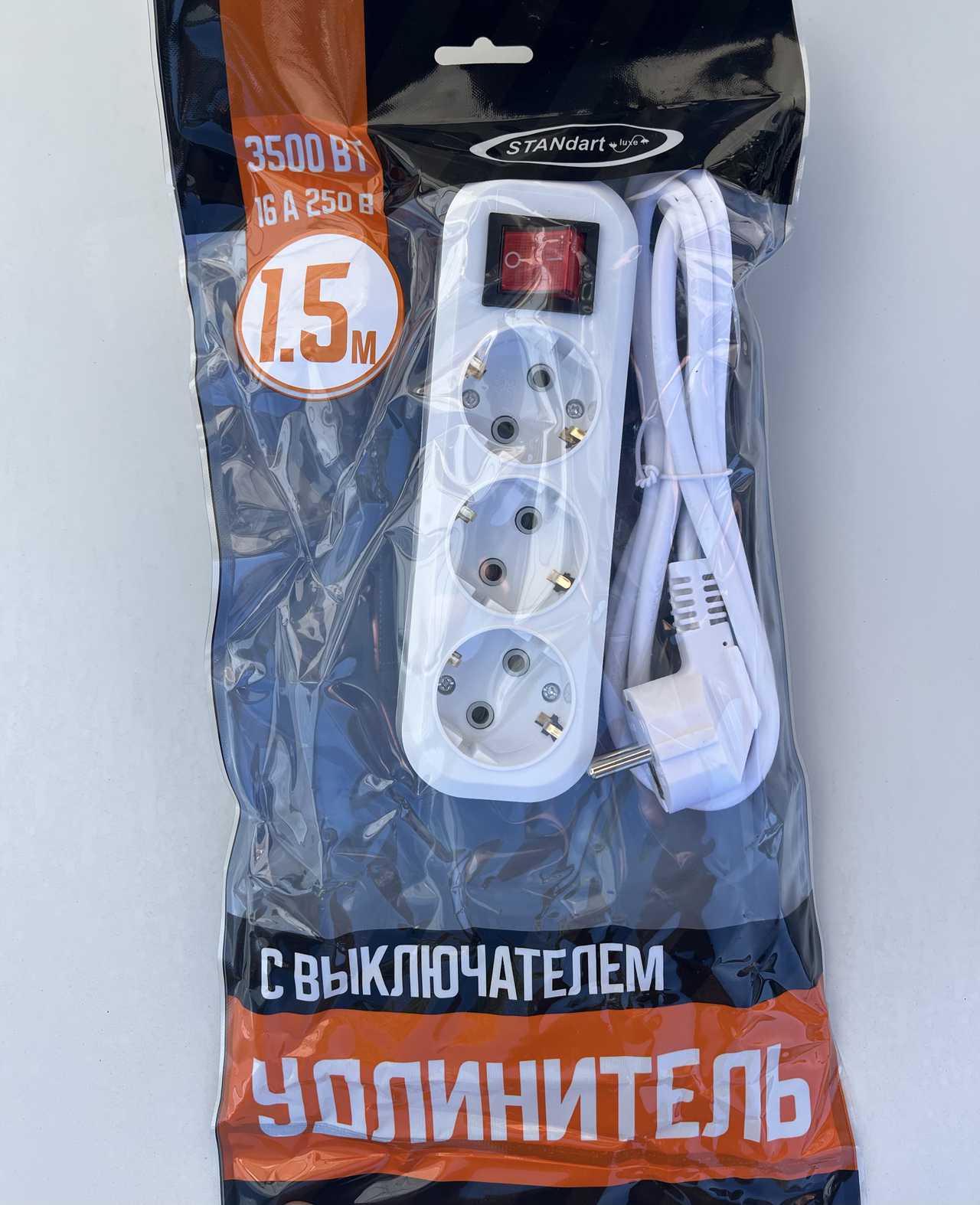 Удл-ль Standart Евро 3гн. 1,5м ST12-3W-1,5M провод ПВС 3*1 круглый 60шт/уп