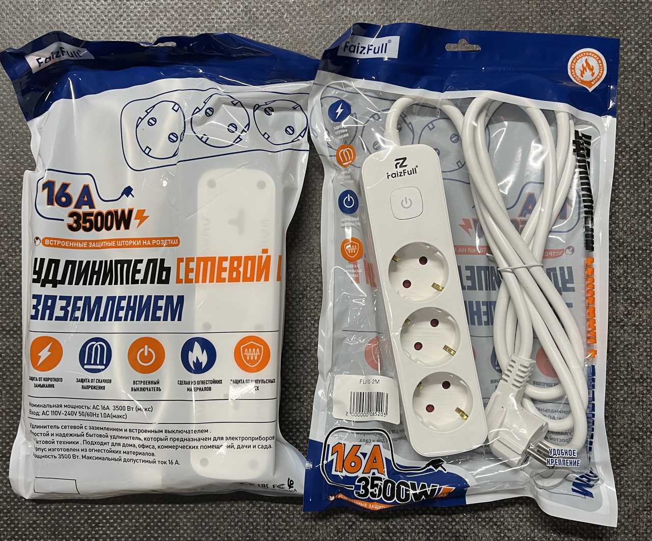 Удл-ль FaizFull Евро 3гн. 2м FU10-2m провод ПВС 3*1.5 толстый круглый 60шт/уп