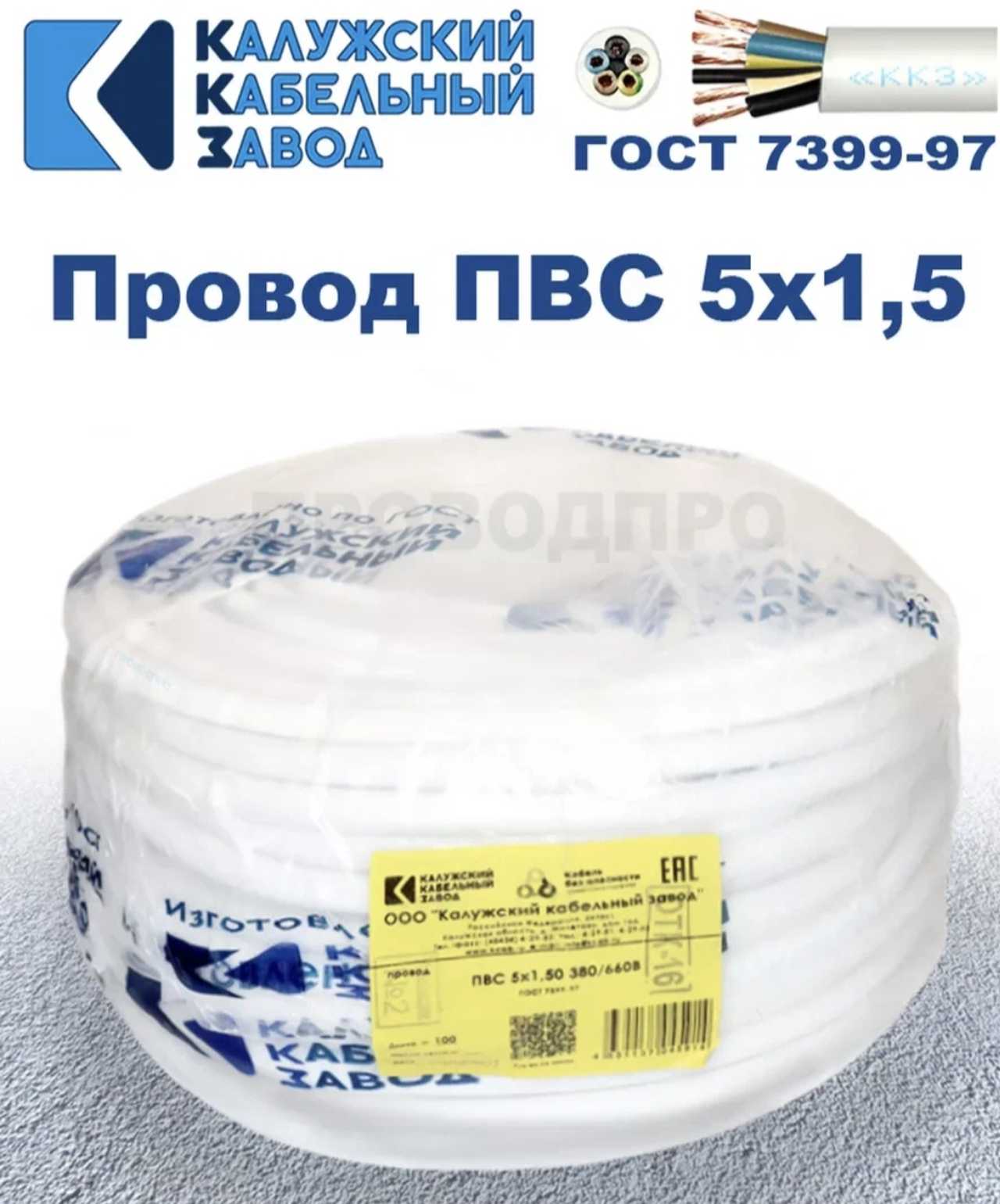 ПВС 5х1,5мм² ГОСТ ККЗ по100м/бухте Калужский Кабельный Завод