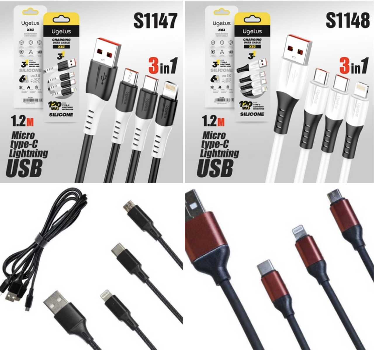 USB кабель 3в1 (Micro+Lightning+Type-C) X83_S1147_S1148 силикон 1,2м ч./б. Z9_R31_B378/B2991/B3125