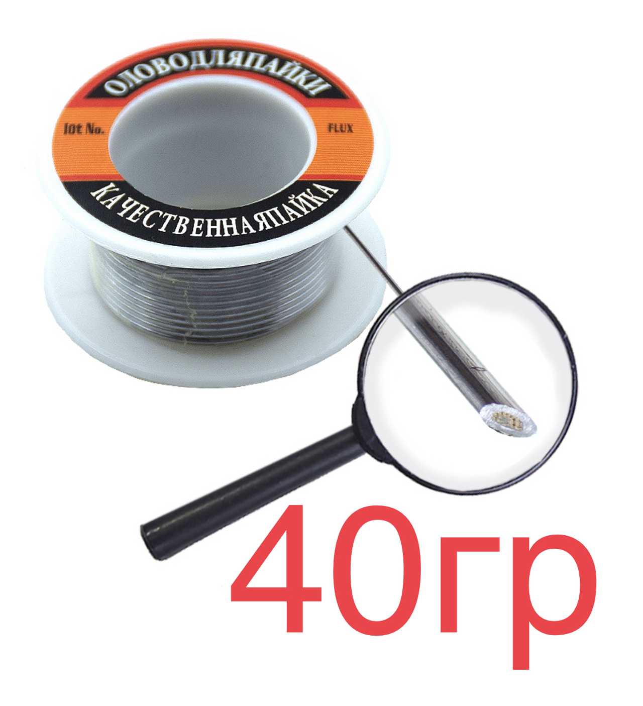 Припой-катушка 40гр с канифолью Ø=1мм "качественная пайка" 11-0519_CF-10 20шт/уп