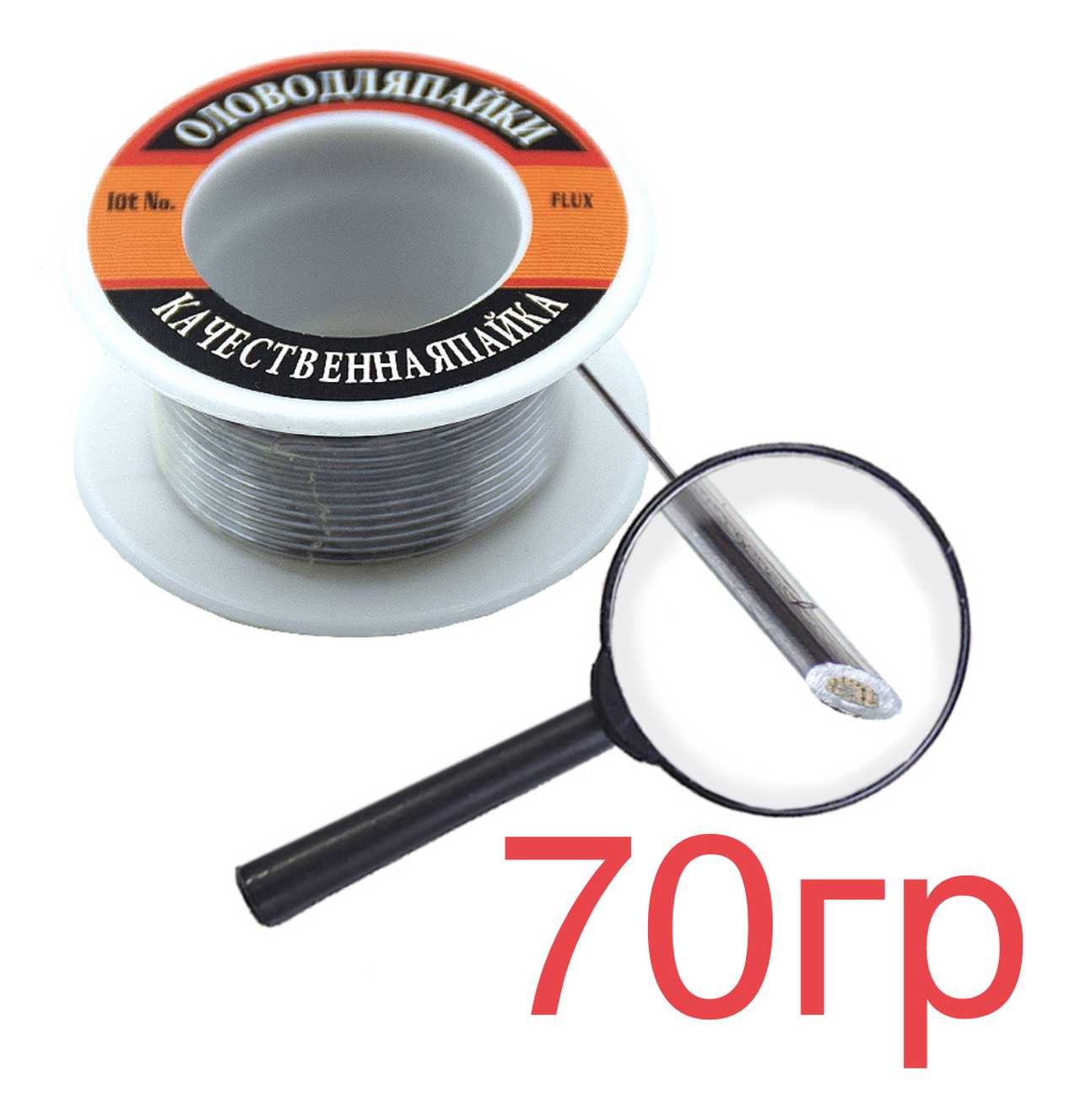 Припой-катушка 70гр с канифолью Ø=1мм "качественная пайка" ПОС-61 Sn60/Pb40 20шт/уп