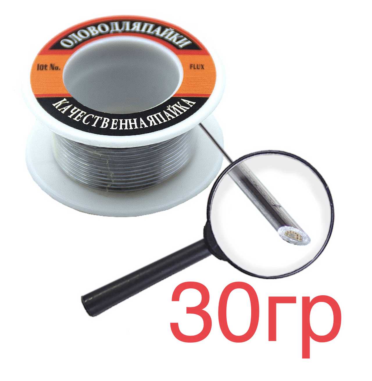 Припой-катушка 30гр с канифолью Ø=1мм "качественная пайка" ПОС-61 Sn60/Pb40 20шт/уп