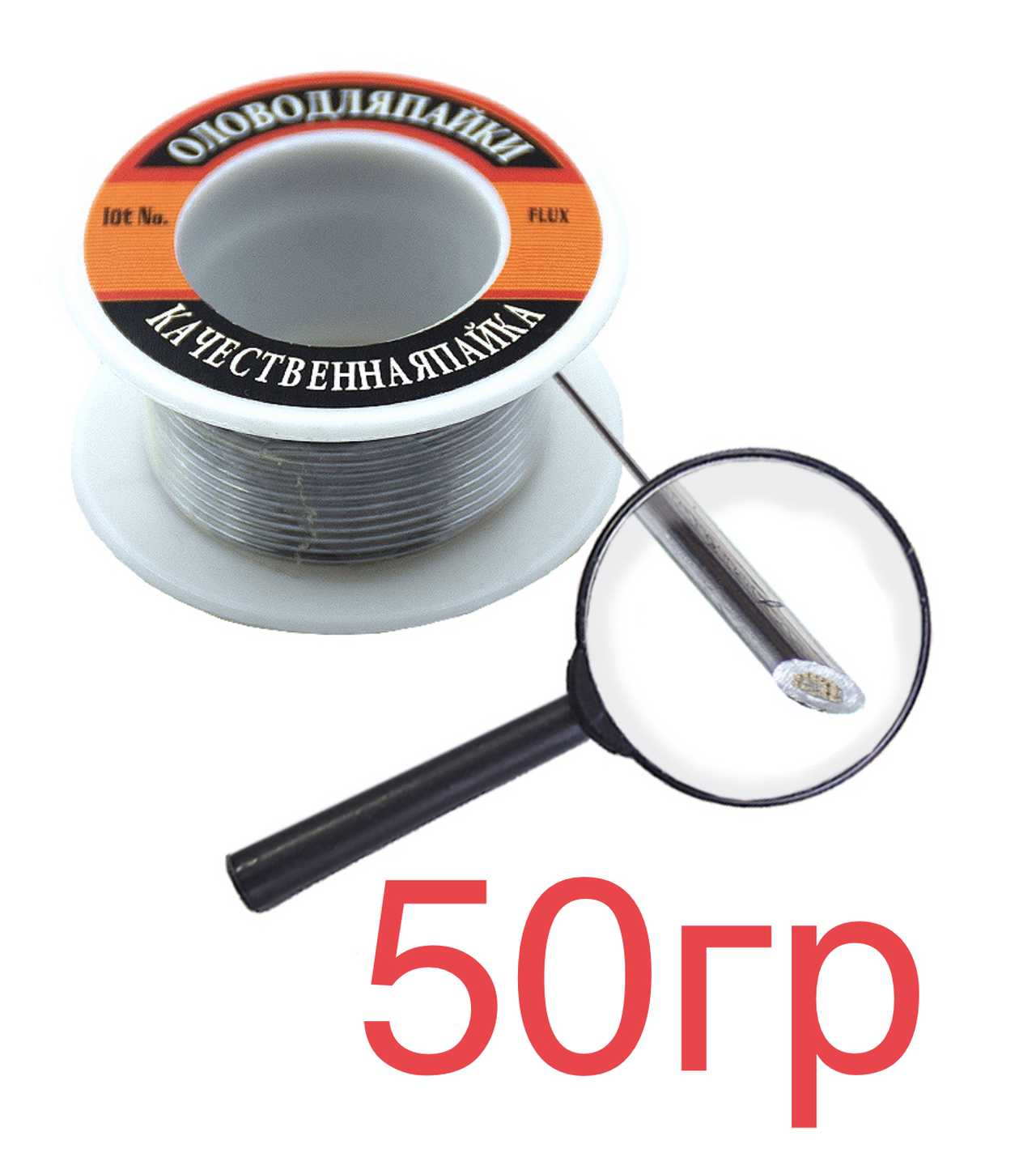 Припой-катушка 50гр с канифолью Ø=1мм "качественная пайка" ПОС-61 Sn60/Pb40 20шт/уп