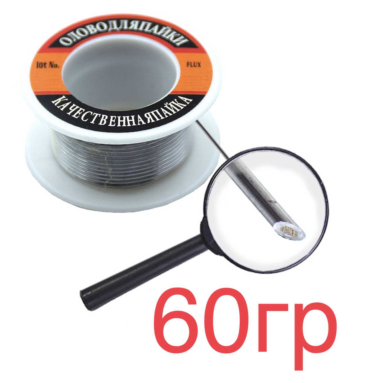 Припой-катушка 60гр с канифолью Ø=1мм "качественная пайка" ПОС-61 Sn60/Pb40 20шт/уп