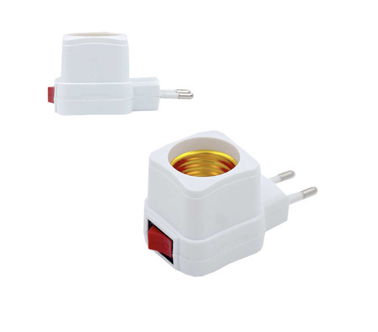 Переход Вилка-Патрон КУБ Угловой Е27+Выкл. 10шт/уп