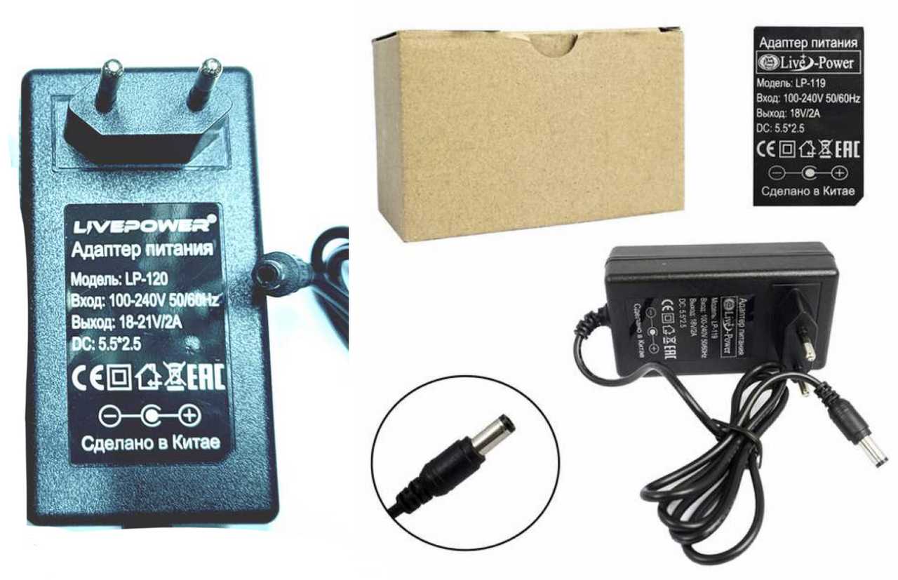 З/У 18-21V 2A LP119_A3696/LP120_A5512 (шт. 5.5*2.5H) + контроллер заряда для литиевых сборов
