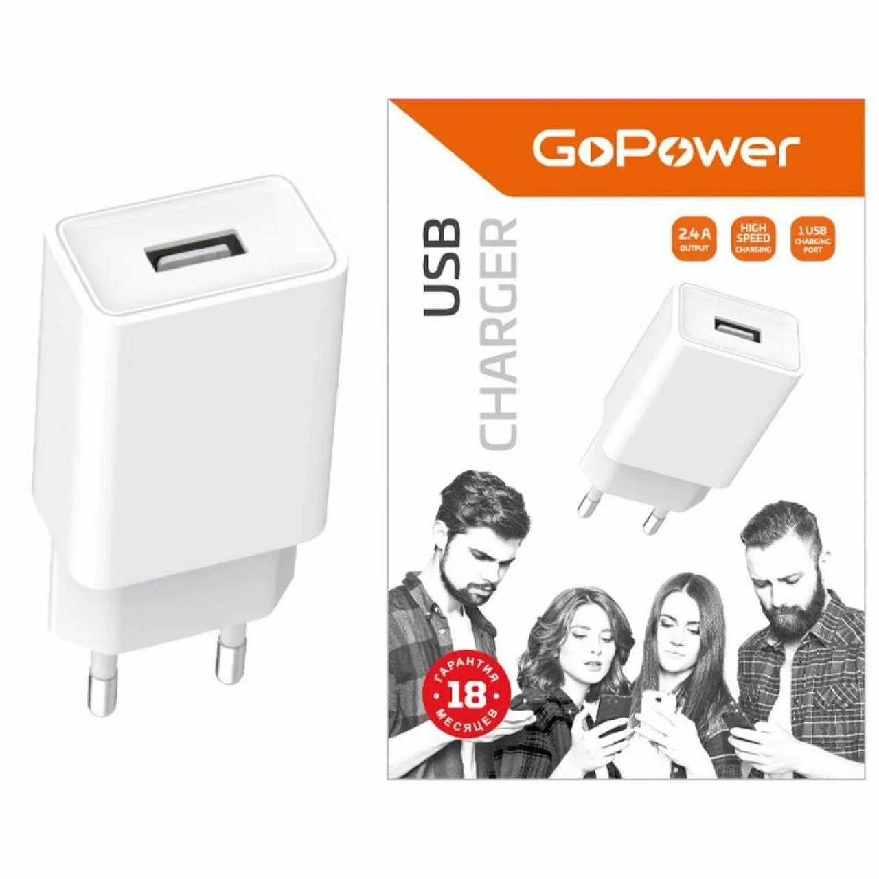 СЗУ 1*USB 5V-2,4A GoPower GP1U 12W