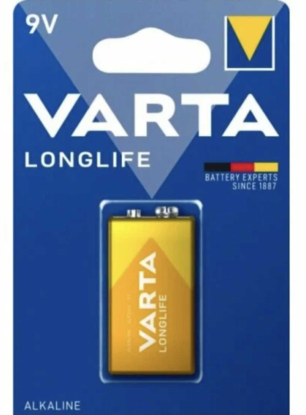 6LR61 крона Varta LONGLIFE alkaline 9V 4122 BL-1/10/50шт/уп