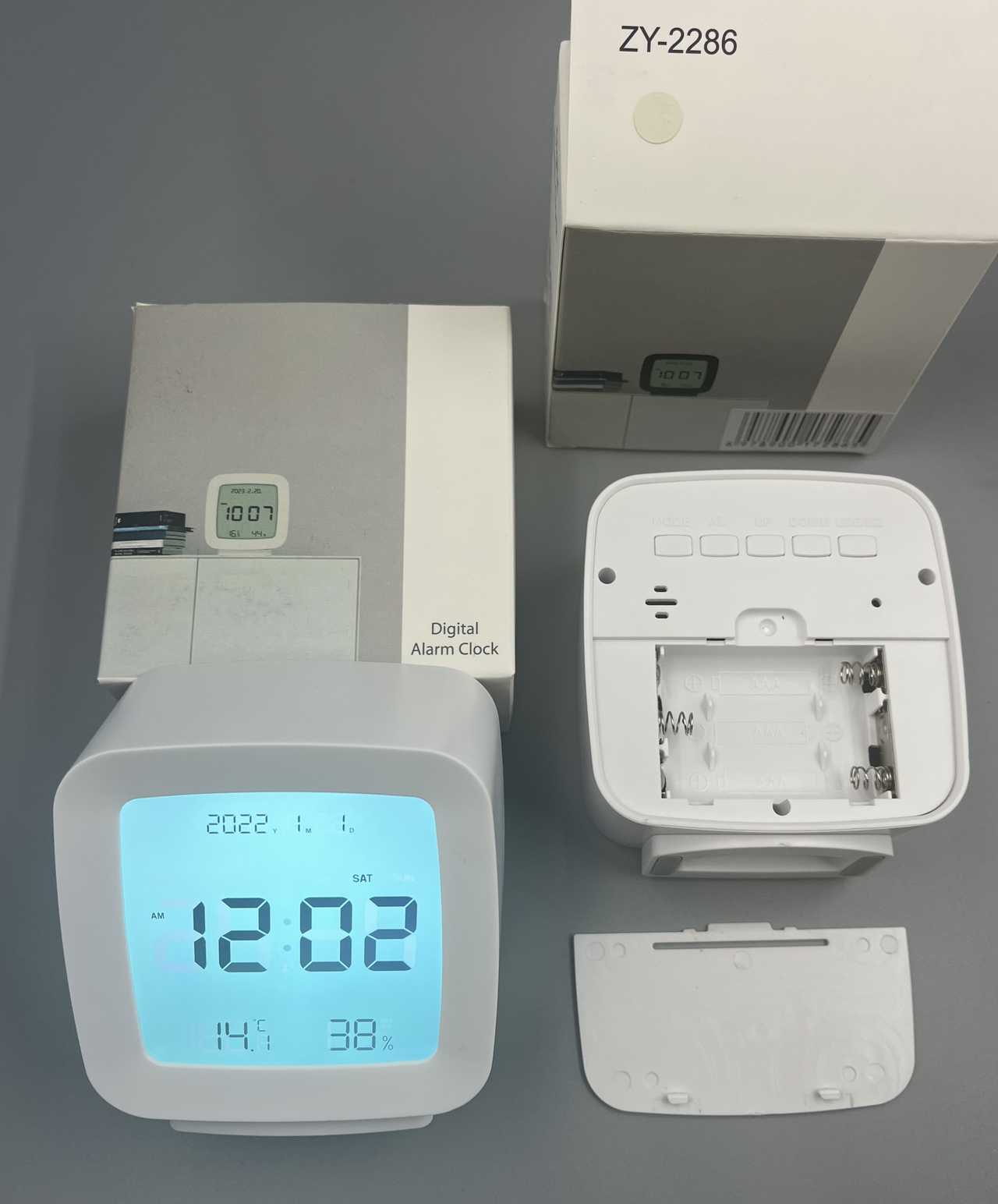 Часы+термометр+влажность+календарь ZY-2286 подсветка белые 3*AAA