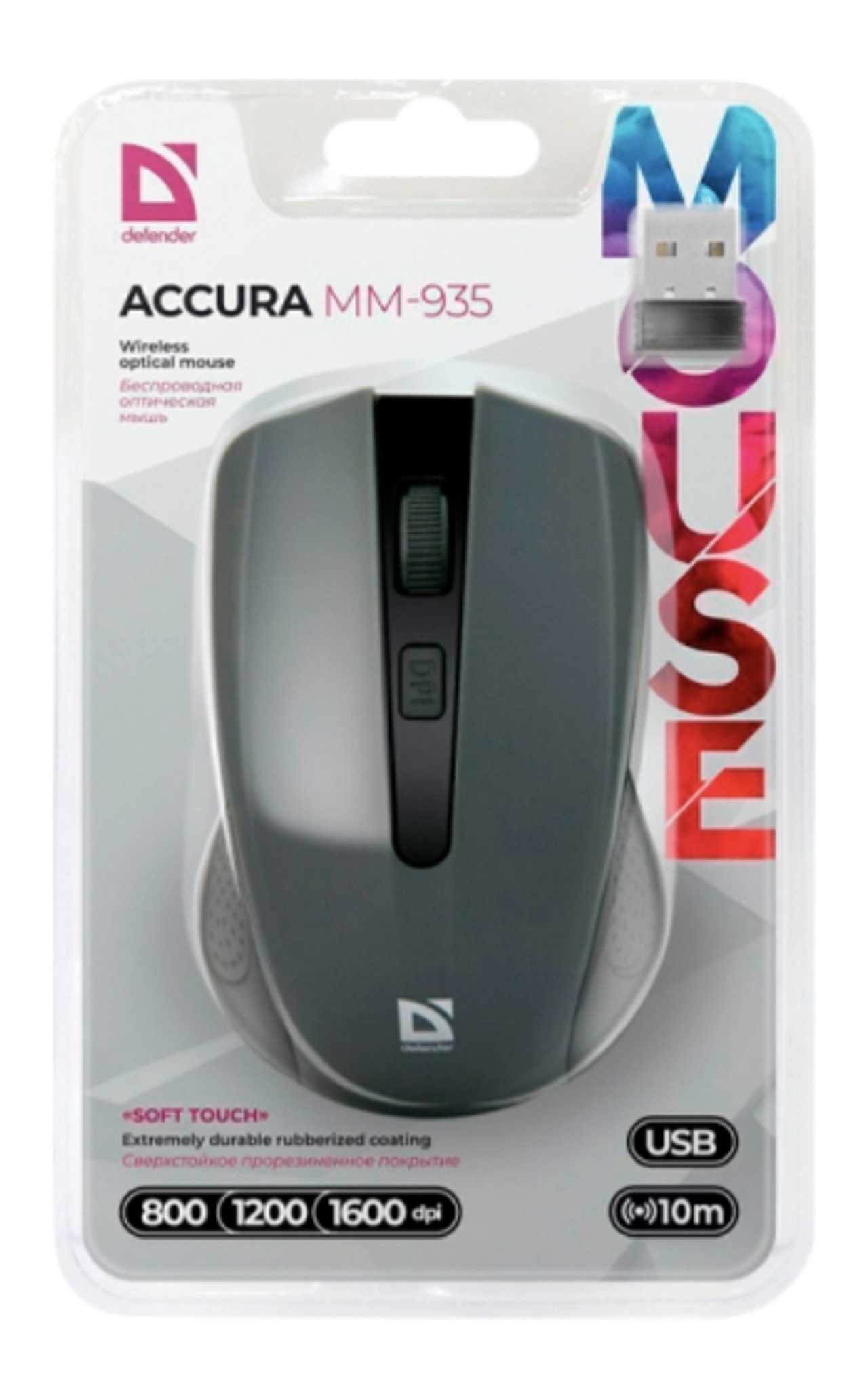 Мышь беспроводная Defender MM-935 Datum классическая USB серый