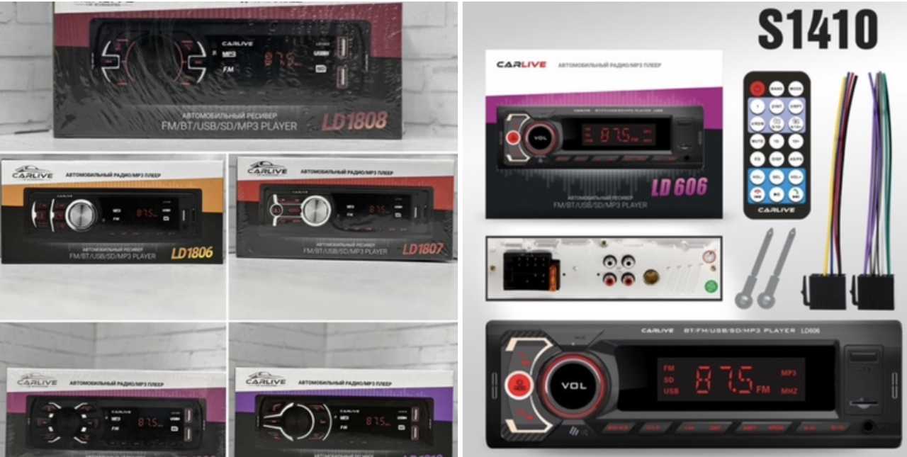 Авто-магнитола 1DIN Carlive LD1030_S045_LD5010_S670_1040_S046 Bluetooth+2*USB/TF+AUX+2RCA 7 COLOR