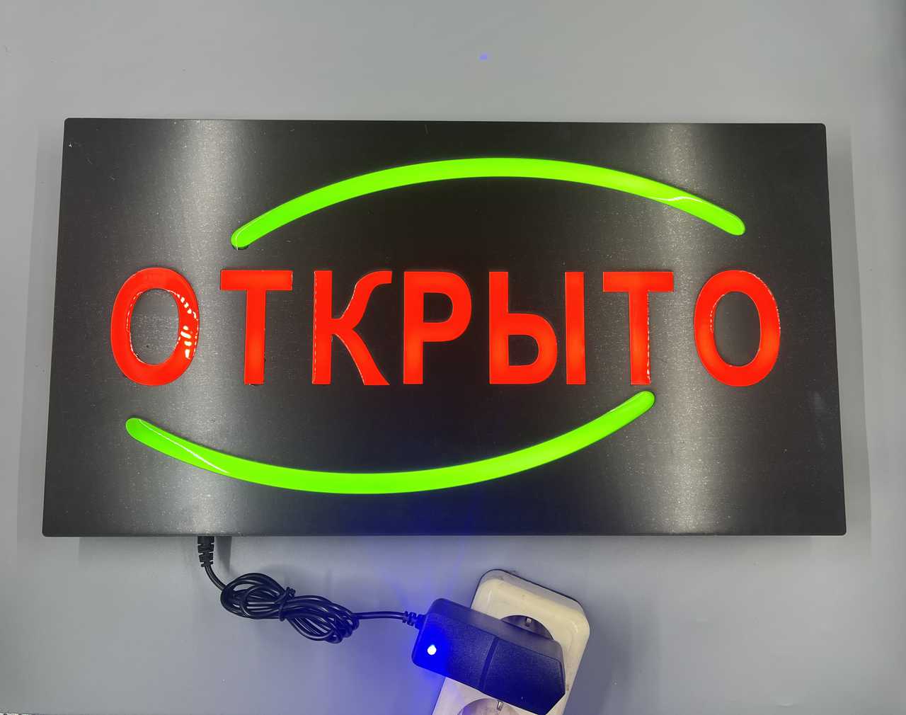 Табличка LED БОЛШАЯ F/А-3 "ОТКРЫТО" 55х33 ПРОВЕРИТЬ!!!