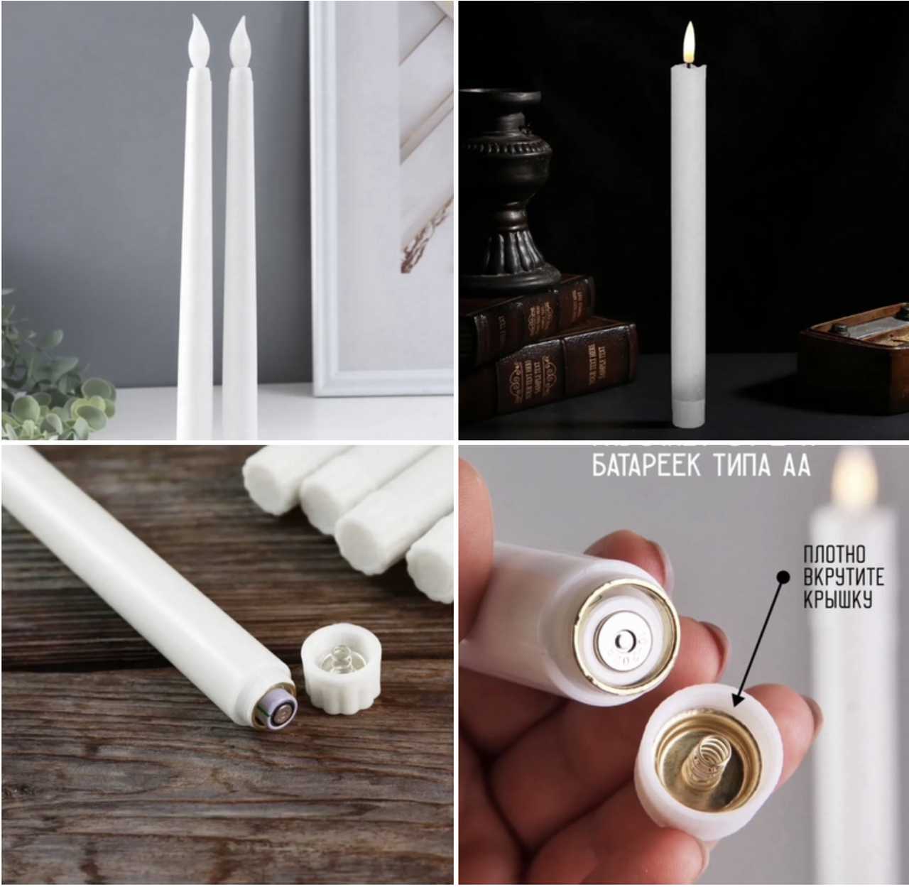 Свеча узкая с эффектом живого пламени 2*AAA Цена За Упаковку ( Две штуки )