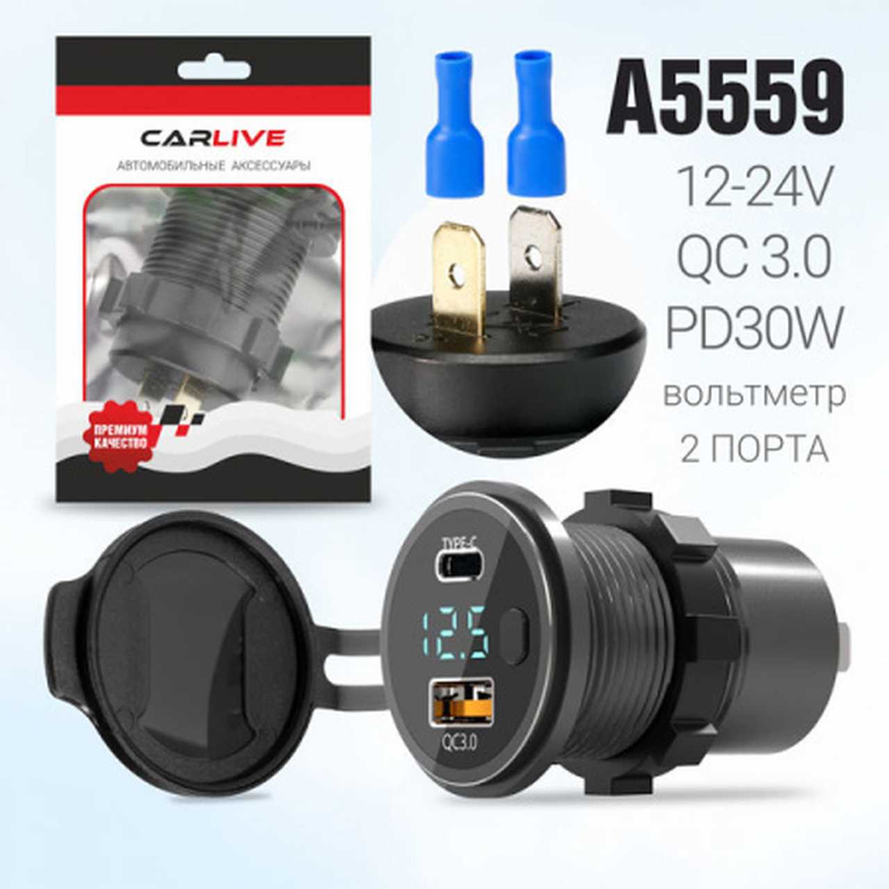 АЗУ врезной круглый+Вольтметр CH18_A5105_CH16_A5076_GH-DS56_A3003 1USB+PD(type-c) QC3.0 12V-24V