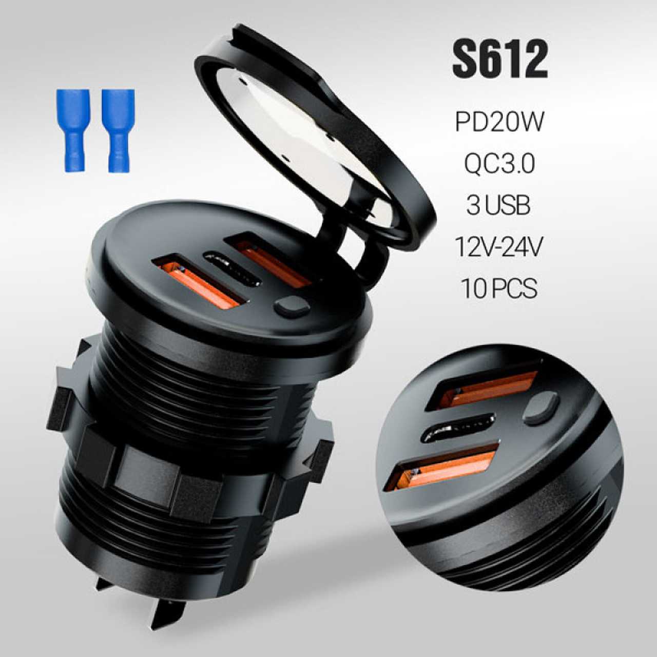 АЗУ врезной круглый CR1045_S612 2USB QC3.0 +PD(type-c) 12V-24V