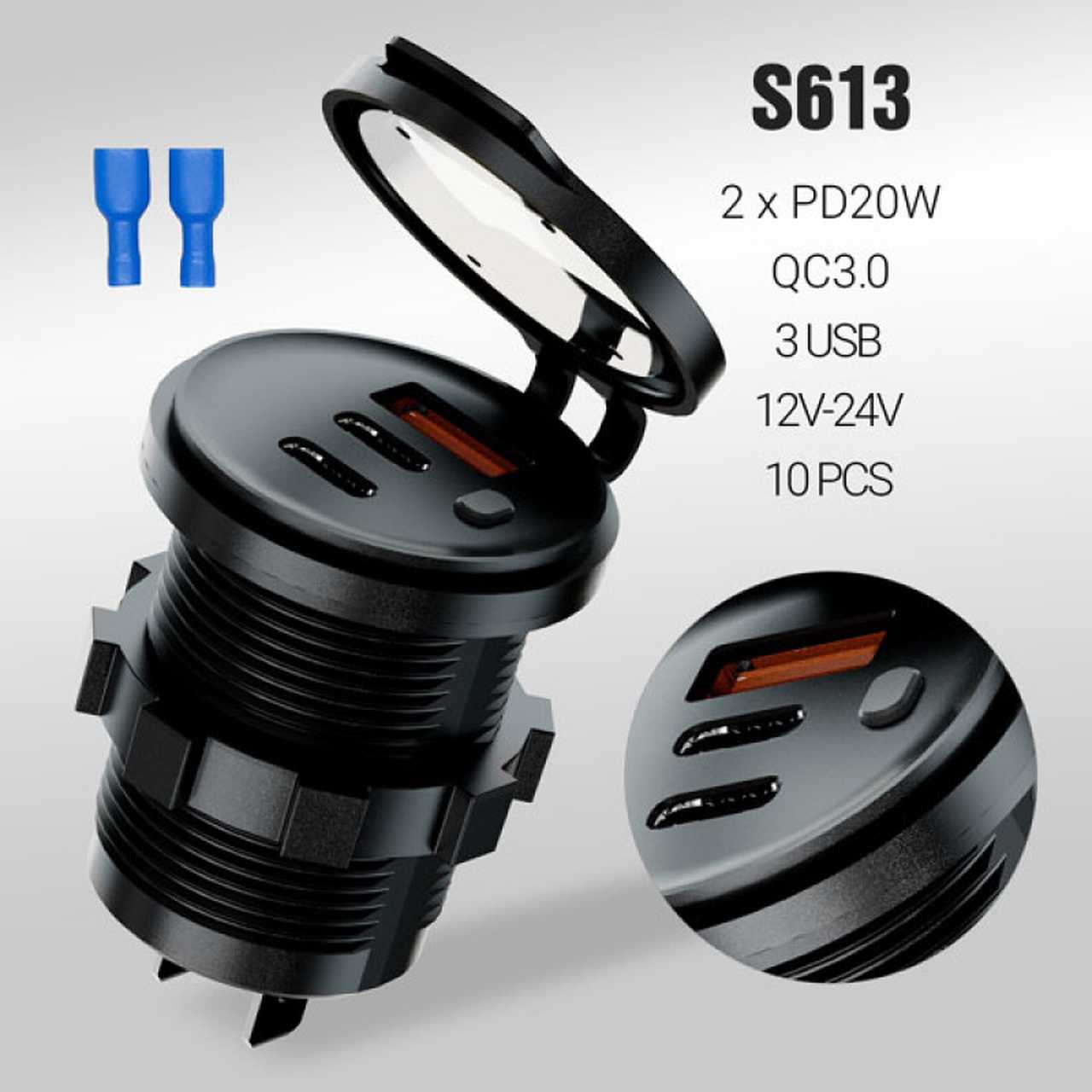 АЗУ врезной круглый AC09_S867_CH27_A5087_GH-DS138_A4678 1USB+PD(type-c)+on/of QC3.0+PD 12V-24V