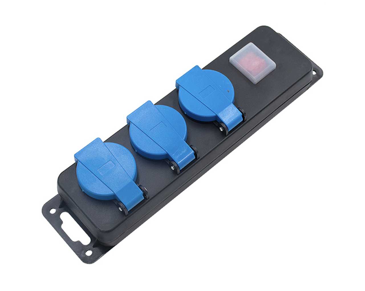 Колодка 3-я ЕВРО КАУЧУК с крышками YK403P 16А iP44 4/40шт/уп