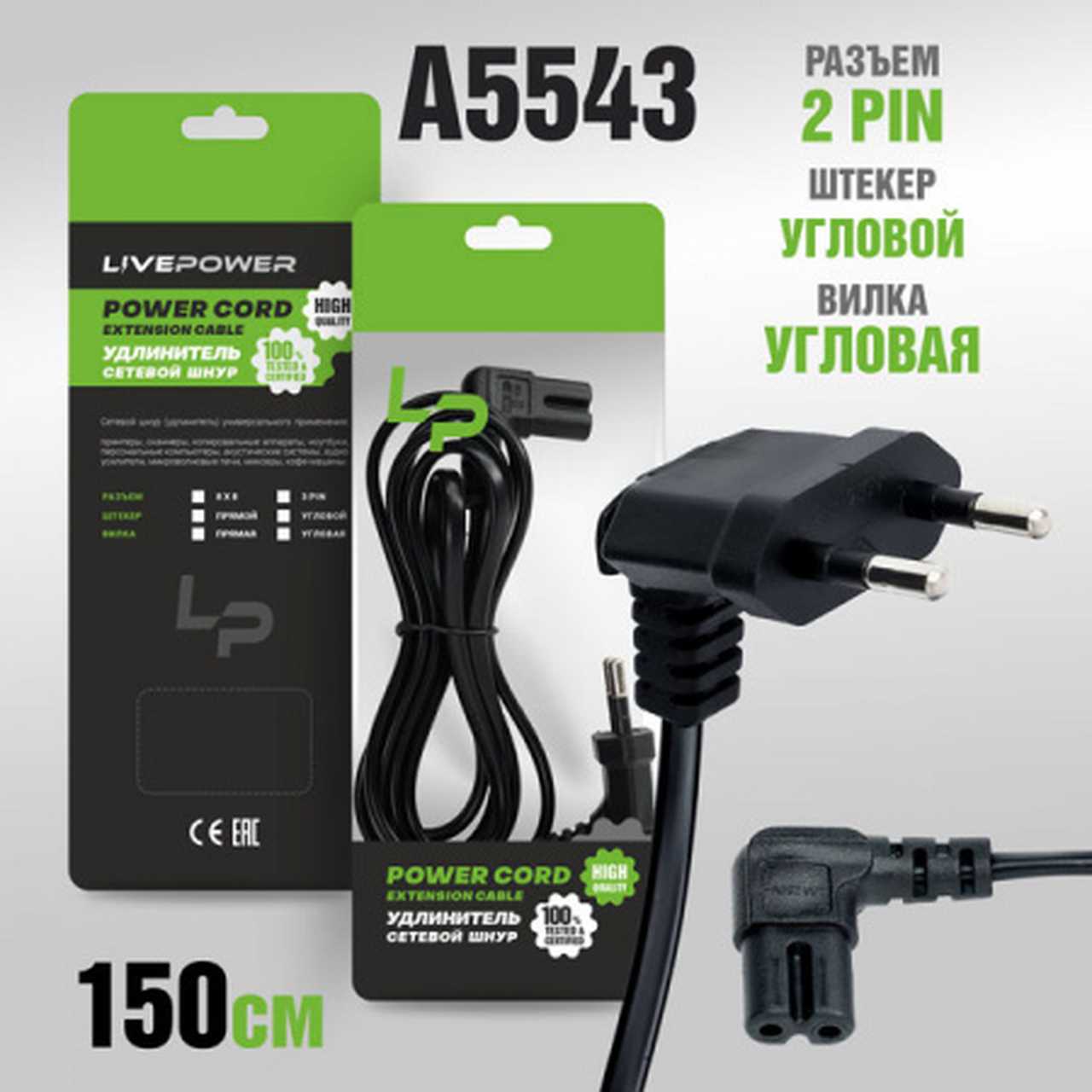 Шнур сет. для р.-а. Восьмерка Угловой С7 A5447_VS52_A4910 черный 1,5м