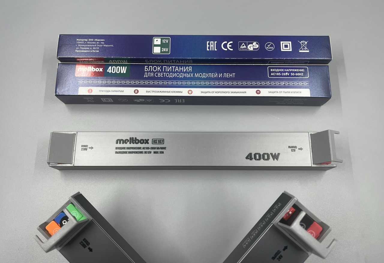 Б.П. для ленты 12V-33,34A-400W=320 iP20 Meltbox RS107 11-0117 быстрозажим