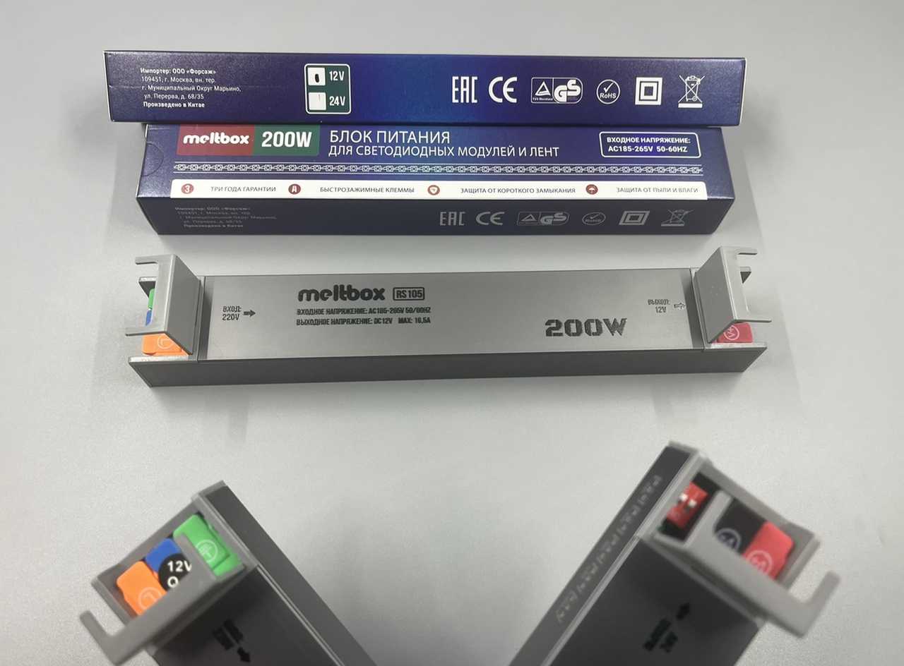 Б.П. для ленты 12V-16,5A-200W=160 iP20 Meltbox RS105 11-0115 быстрозажим ФОТО