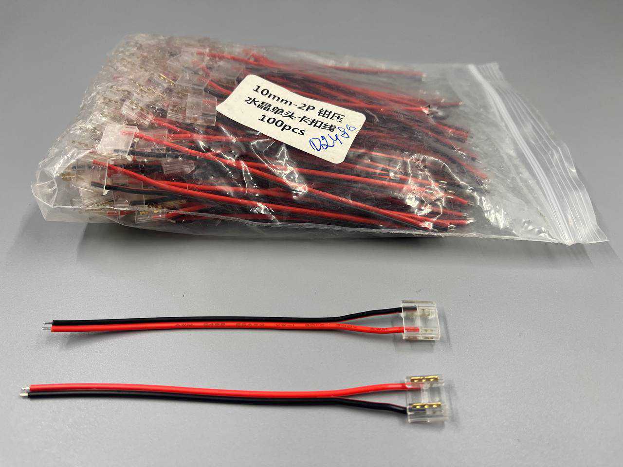 Коннектор-скотчлок для Led лент 8мм 11-0541 прозрачный с красно-черными проводками