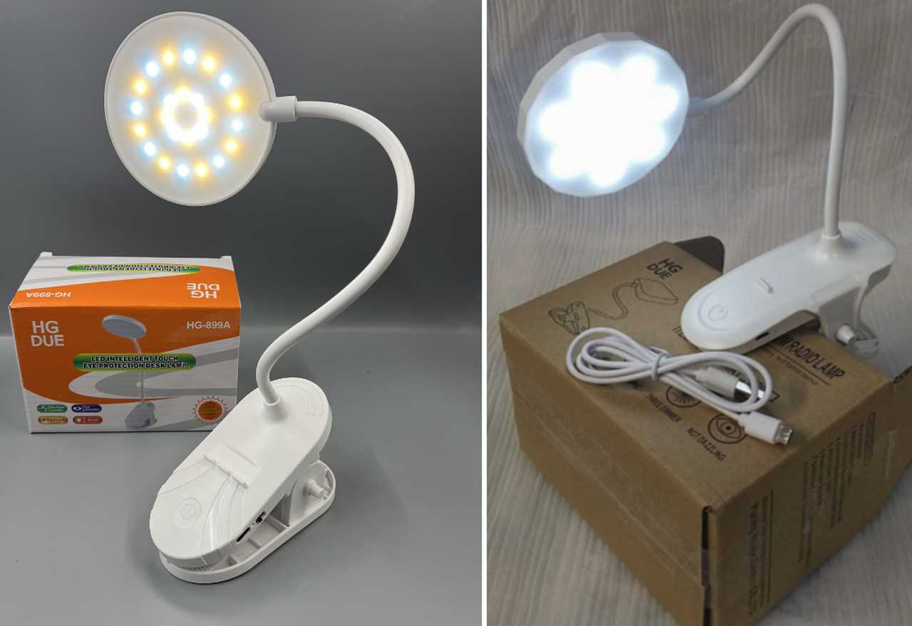 Светильник прищепка HG-899A_HG-789A Круглый аккум. бел+шнUSBm 3 ур.яркости
