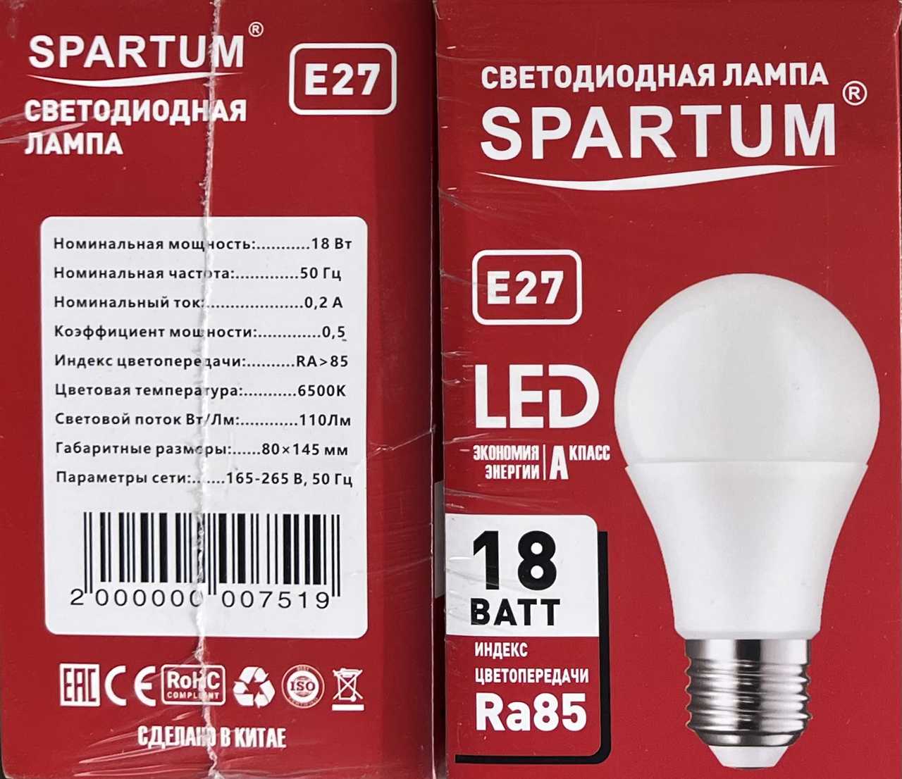 Лампа груша Spartum A80 18W E27 6500K красная упаковка
